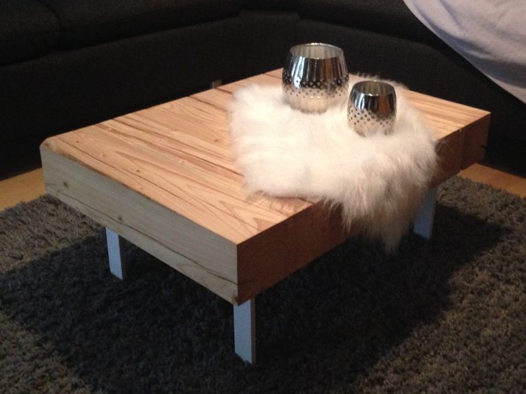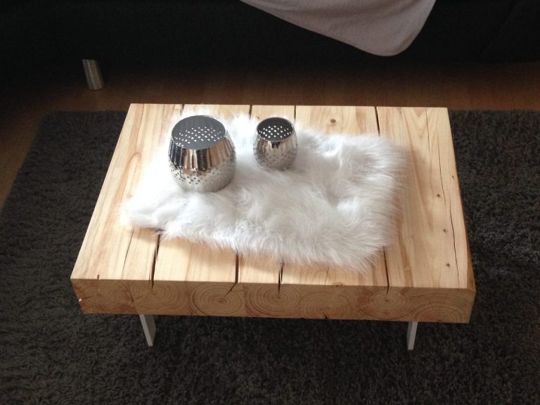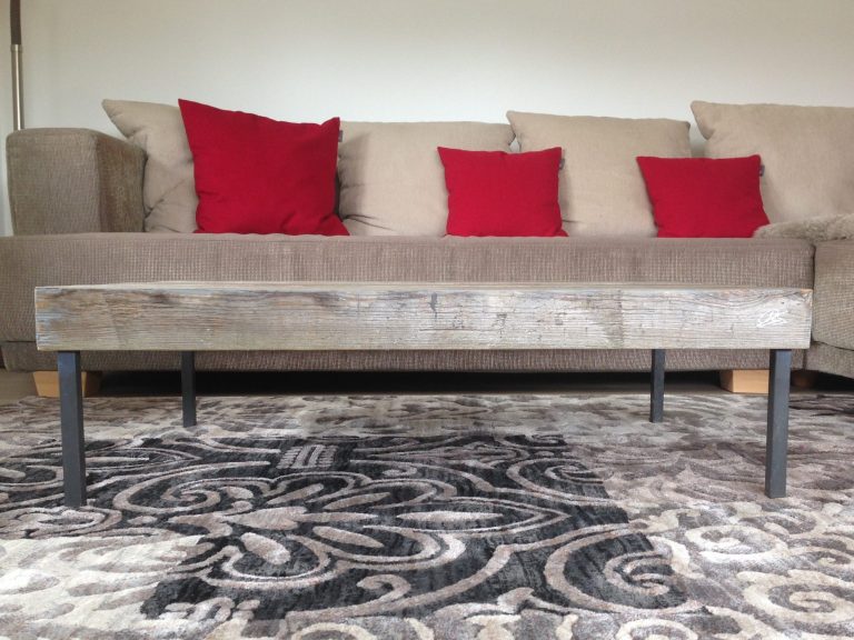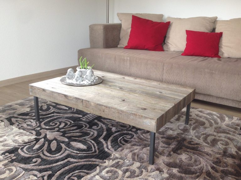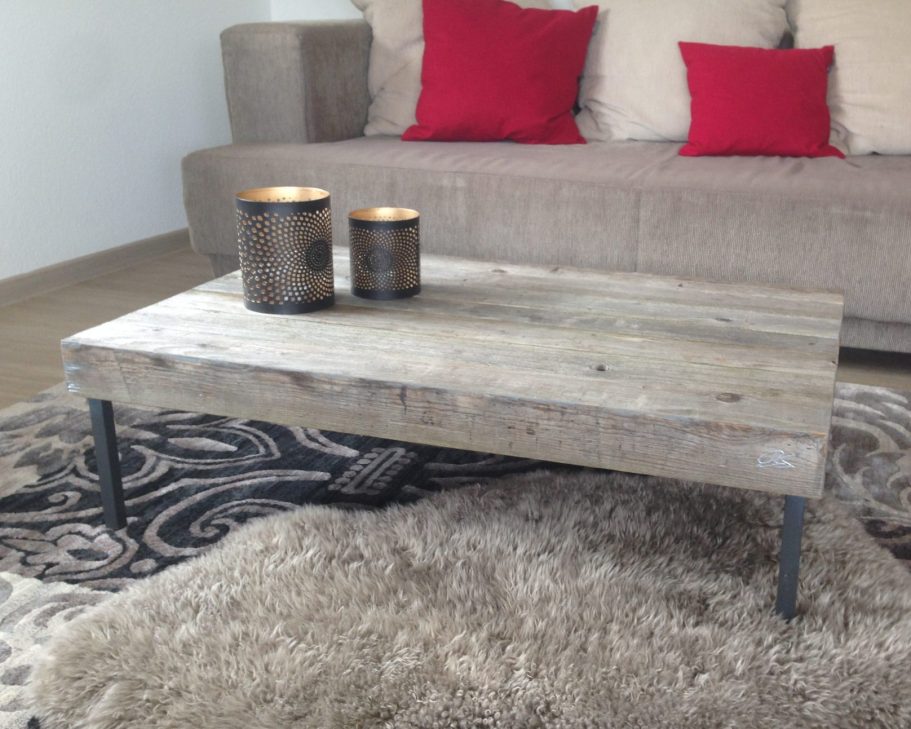 Teile eines Bettgestells aus den 30er Jahren, kombiniert mit dem vergrauten Holz eines Glaswagens - vollendet zu einem Couchtisch.