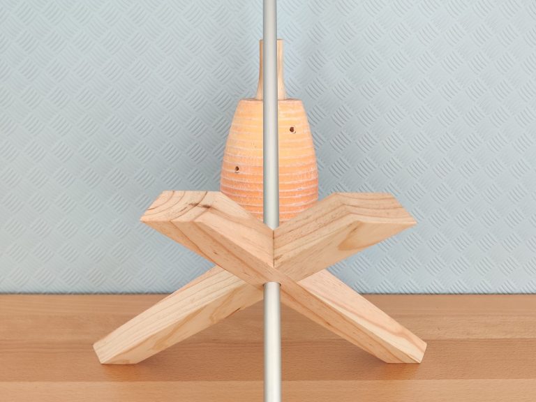 Harmonische Farben und das fische Design machen diese Leuchte extrem ansehnlichg. Der umgedrehte Blumentopf erinnert dabei an einen Bienenstock.